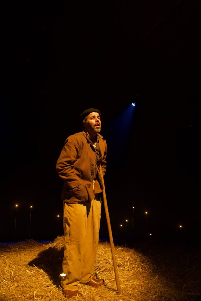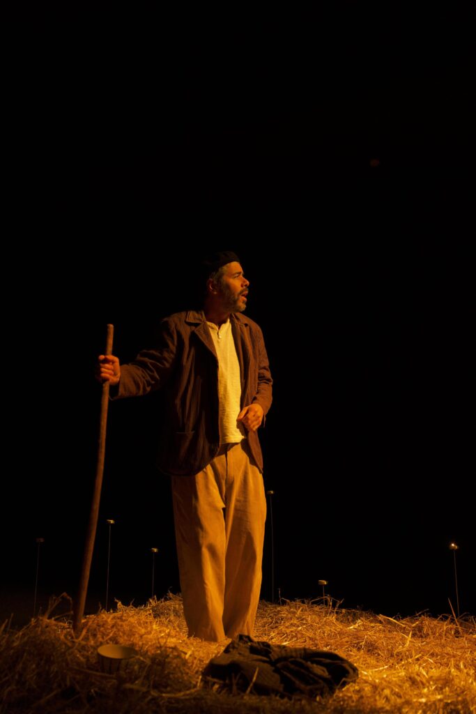 Quando um homem do campo carregado de memórias, caminha solto no espaço, os seus pés de barro misturam-se com os dedos que se cavaram na terra. A harmonia é dissonante. No equilíbrio, ele parece  cambalear, como se fosse voar. A melodia desse movimento, encontra o compasso no tropeço, como um corpo suspenso, que procura o gesto para sintetizar, a ideia que se perde no meio da palavra.